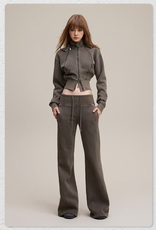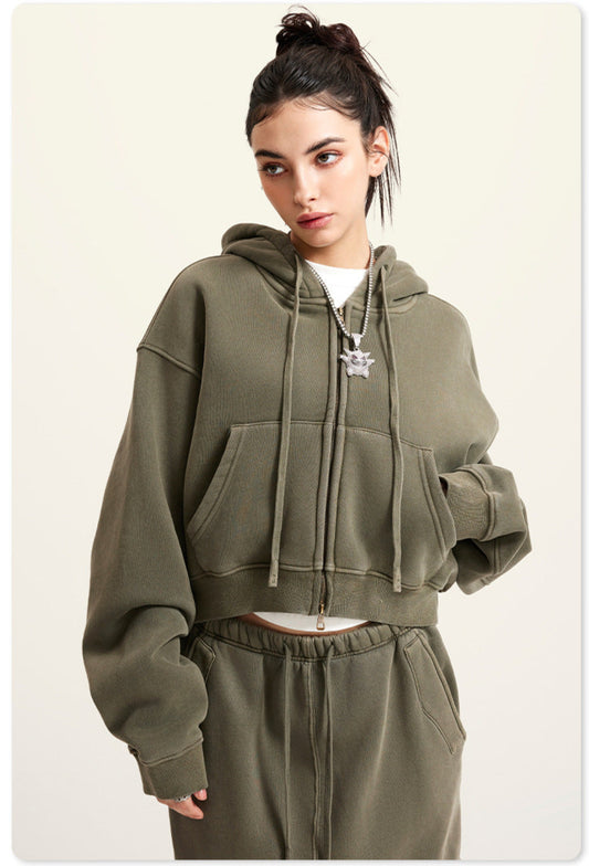 Washed zipper hoodie